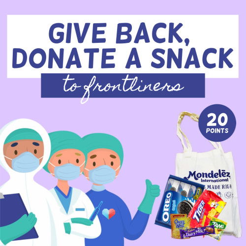 Patuloy pa rin ang laban ng ating mga frontliners. Bigyan sila ng saya at sigla sa pamamagitan ng pagdo-donate ng 20 POINTS! Sa pakikipagtulungan ng The Asian Parent sa Mondeléz, ninanais namin makalikom ng 30,000 points para mabigyan ang 80 frontliners ng snack packs. HOW TO DONATE: 1. Pumunta sa REWARDS section at hanapin ang GIVE BACK, DONATE A SNACK. 2. Click REDEEM. Yun na! You can redeem as many times as you want. Kaya't ano pa ang hinihintay mo? It's time to give back and donate a snack!