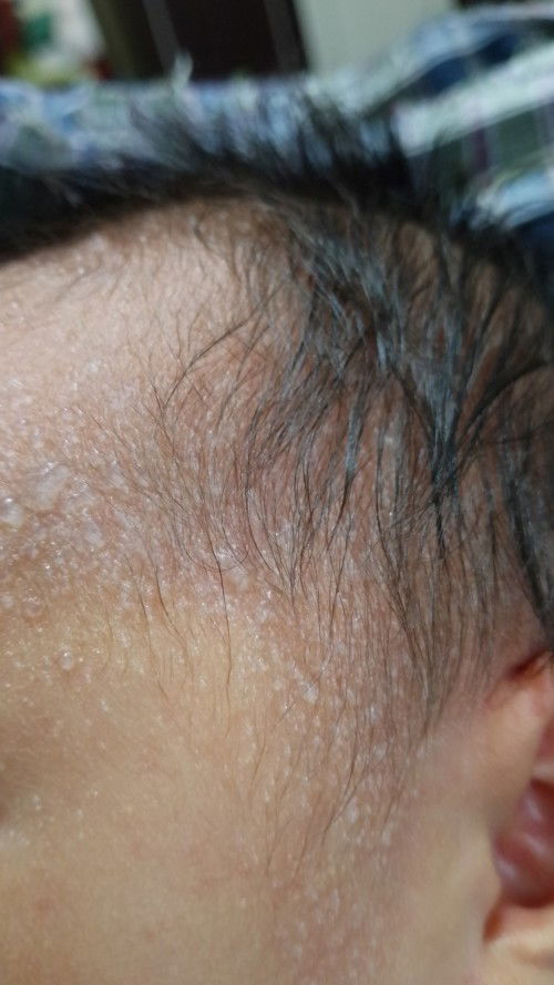 Bintik putih seperti ada air didalam dikening dan kepala bayi