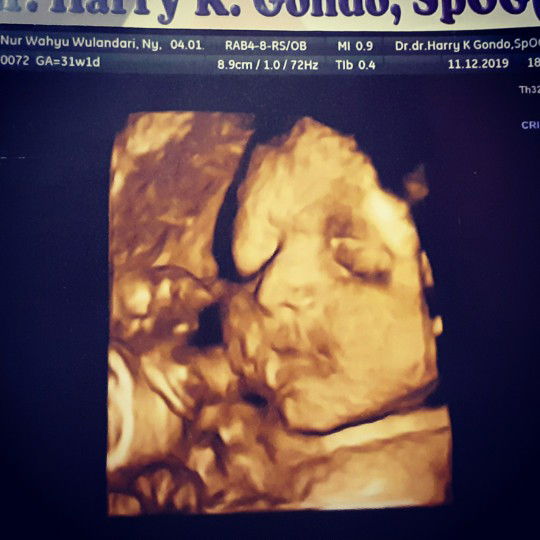Masya Allah gemes.... Hidungnya kagak nahan... Mancung... ๐ Senang ya USG 4D dedeknya mau kasih tunjuk wajahnya. Aku 2 x USG tgn dedeknya selalu nutupi๐ Ini udh 36-37 weeks mau USG 4 D masih bisa gak yaaa????????