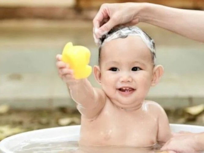 How much water should you put in the tub before bathing your baby?