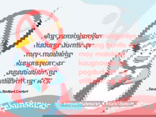 An analysis of 25 studies by Biomed Central in the UK concluded that smoking during pregnancy was significantly associated with a 47% increase in the odds of stillbirth! It's time to #KickTheButt. Stop smoking and reduce your smoke exposure. #ProjectSidekicks #TAPSidekicks
