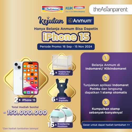 Kumpulkan Anmum STAMPS dan raih kesempatan memenangkan hadiah total senilai lebih dari Rp150.000.000✨! Dapatkan 1 STAMPS untuk setiap pembelian 1 pcs Anmum di Indomaret atau Klik Indomaret (berlaku kelipatan). Jangan lewatkan kesempatan istimewa ini! Belanja Anmum sekarang di Indomaret terdekat atau melalui Klik Indomaret dan mulai kumpulkan Anmum STAMPS. Semakin banyak STAMPS, semakin besar peluang Mum untuk memenangkan hadiahnya! 🤫Psst, Mum! Ada kejutan spesial nih! ✨ Selain hadiah utama, Mum berkesempatan membawa pulang hampers eksklusif dari Anmum. Yuk, simak syarat dan ketentuannya di postingan ini! 🎁 https://bit.ly/3AaenNe Periode: 16 September - 15 November 2024