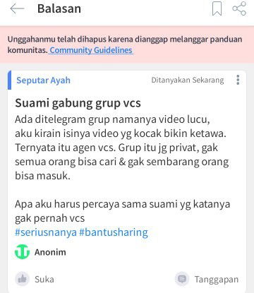 naahh, naahh, suami saya pernah nih gabung grup telegram kek gini. pas saya cek galeri kok banyak foto porn. saya tegur, dia bilang nggak tahu. hahah, mustahil banget, akhirnya saya tancapin bender perang dingin. setiap dia minta jatah, saya selalu jawab, "berhubungan aja sono sama yang ada di sana. jangan minta ke gue." ada kali dua minggu lebih saya gituin, akhirnya dia keluar dari grup dan uninstall telegramnya. 😌