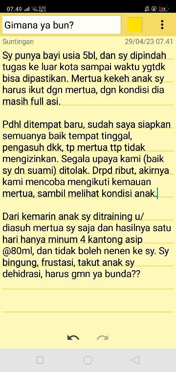 Kenapa harus nurut orgtua/mertua setelah menikah? Seharusnya sebagai suami harus punya pendirian, sorry to say that. Orangtua saya dlu ngelarang saya ke Singapore karna saya kerja. Tapi saya gak mendengarkan, toh suami saya yg nyuruh. Dalam rumah tangga gak boleh tuh ada yang ikut campur. Suami istri aja, orgtua/mertua gak berhak ikut campur, tugas mereka hanya mengawasi, memberi saran boleh, tapi jika saran tidak diterima ya harus legowo. Bayi 5 bulan minum ASI hanya 320ml sehari jelas akan mempengaruhi pertumbuhannya, jelas akan dehidrasi, kecuali kalau sudah 6bulan, Kan sudah start mpasi, boleh dikurangin susunya karna ada makanan lain selain ASI, itupun gak 320ml juga, Kan ada panduan di aplikasi ini berapa kasih susu dalam sehari, smuanya tergantung usia. Bayi yg belum mpasi, Kan makanan utamanya ASI. Menurut saya ketika kita sudah menjadi orangtua, kita harus bersikap tegas. Gak perlu keras, Dan jangan mau diatur2 sama ortu/mertua. Bukannya menyuruh anak untuk durhaka, tapi anak yg sudah menikah, itu ortu dah gak ada hak lagi untuk atur2 anak, apalagi ngatur cucu. Salah satu solusinya, suami harus tegas, jangan lembek dengan orgtua, ini bukan berarti kasar ya, tegas aja, saya punya keputusan ini, tolong hargai keputusan saya. Saya ingin yang terbaik untuk anak saya. Easy, simple 😅 gak perlu marah2. Saya nih misal anak saya gak suka dengan baju yg saya pilihkan, saya suruh dia milih sendiri sesuai dgn style yang dia suka. Kenapa saya ajarin begini? karna nantinya saat dia beranjak dewasa dia bisa ambil keputusan, dia bisa independent, gak ketergantungan org lain. Saya sebagai orgtua gak berhak atur2 keinginan anak Selama itu dijalan yg benar, jika menyimpang Dari agama, nah baru deh saya keras. Gak ada anak yg durhaka karna memiliki prinsip hidup sendiri, apalagi anak yg sudah menikah, terserah aja mau tinggal bareng kek, mau pisah rumah kek, pisah pulau, pisah negara, it doesn't matter at all. 😅 Yang penting Kan ttep berbakti, berbakti gak harus dgn tenaga langsung, dgn uang jg bisa berbakti. Gak usah takut, bilang sama suami, jangan takut ambil keputusan, Dan jangan merugikan anak sedikitpun. Kalau dah dikasih anak harus dijaga, banyak yg mau punya anak tapi susah dapetnya.