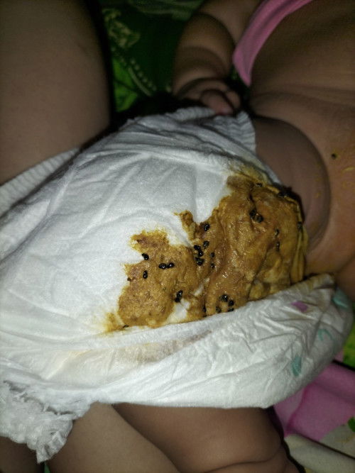 dulu anak saya awak mpasi saya kasi buah naga bun, dia kaya berbiji gitu poopnya. tapi warna poopnya jadi pink atau merah