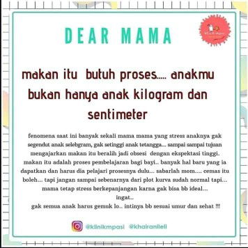 Kl sy tipe ibu yg gak ambil pusing anak harus gendut bun😁paling penting anak sehat, pertumbuhan normal (BB dan TB ideal) dan aktif.. Kl tetangga dan sodara sy banyak banget ini yg msh terobsesi ank hrs gendut.. Kena baby shaming aja sering tp ya sudahlah senyumin seimut mungkin aj hihi...