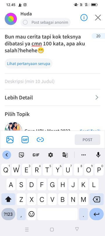 Bun mau cerita tapi kok teksnya dibatasi ya cmn 100 kata, apa aku salah?hehehe😁