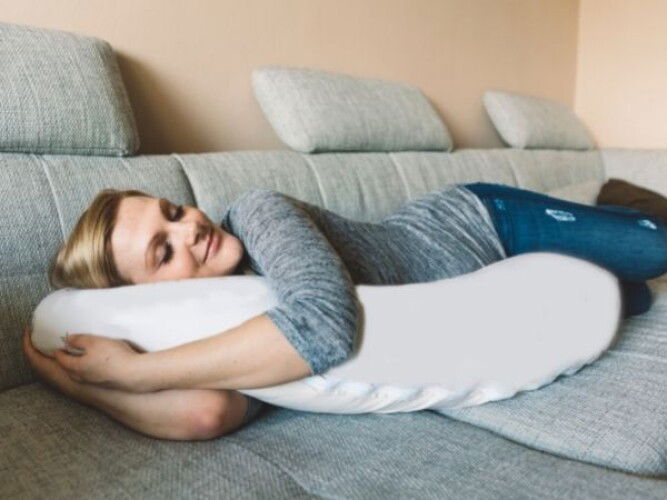 Not an actual pregnancy pillow but a make shift one. One between my legs and one supporting my back. 😁