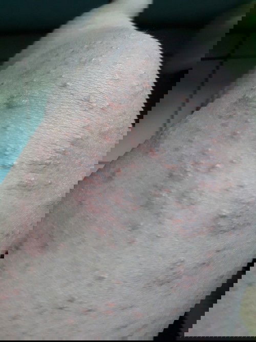 Saya hamil 5 bulan muncul begituan.. merah semua bintik2.. Sampek selangkangan hitam😓 gak pede Deket suami... segala tindakan sudah dilakukan tapi tetep aja... Sekali garuk langsung deh muncul bentol baru... Banyak yg bilang bawaan bayi.. dan sekarang masuk 7 bulan alhamdulillah sembuh dengan sendirinya