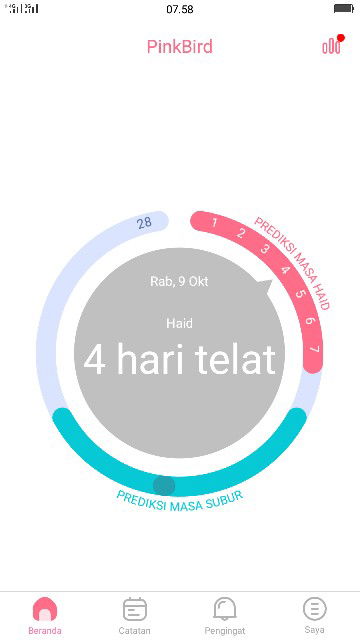 Itu tulisannya 4 hari telat, ya berarti yang harusnya 4 hari lalu haid atau datang bulan ini engga . Makannya tulisannya "4 hari telat" Jelas banget itu