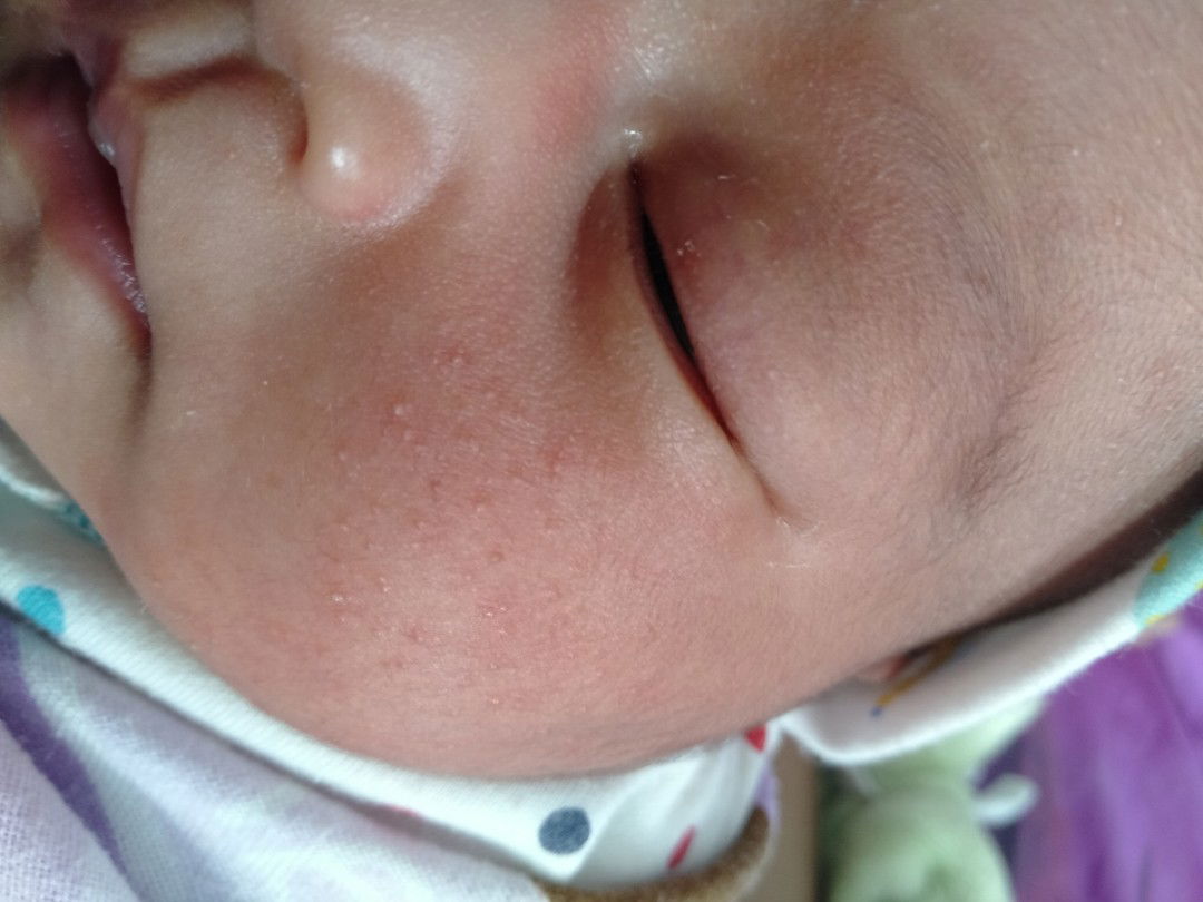 Itu bukan ruam bun itu milia. Sebenernya nanti hilang sendiri setelah 3 bulan. Tapi kalo dedenya gatal bisa dikasih cream tipis2 aja