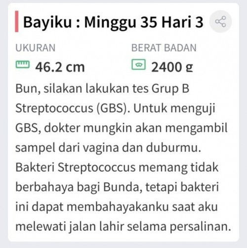 Kalau aku dulu tanya dokter Bun perlu kah test ini itu, memang d saranin dr aplikasinya tapi kan yang paling tau kondisi kita dokter kita.. jadi kalau sekiranya dokter liat ada tanda bahaya bakteri dsb nnti pasti dokternya nyaranin test.. klau dokternya merasa gk da masalah biasanya gak d saranin Bun..