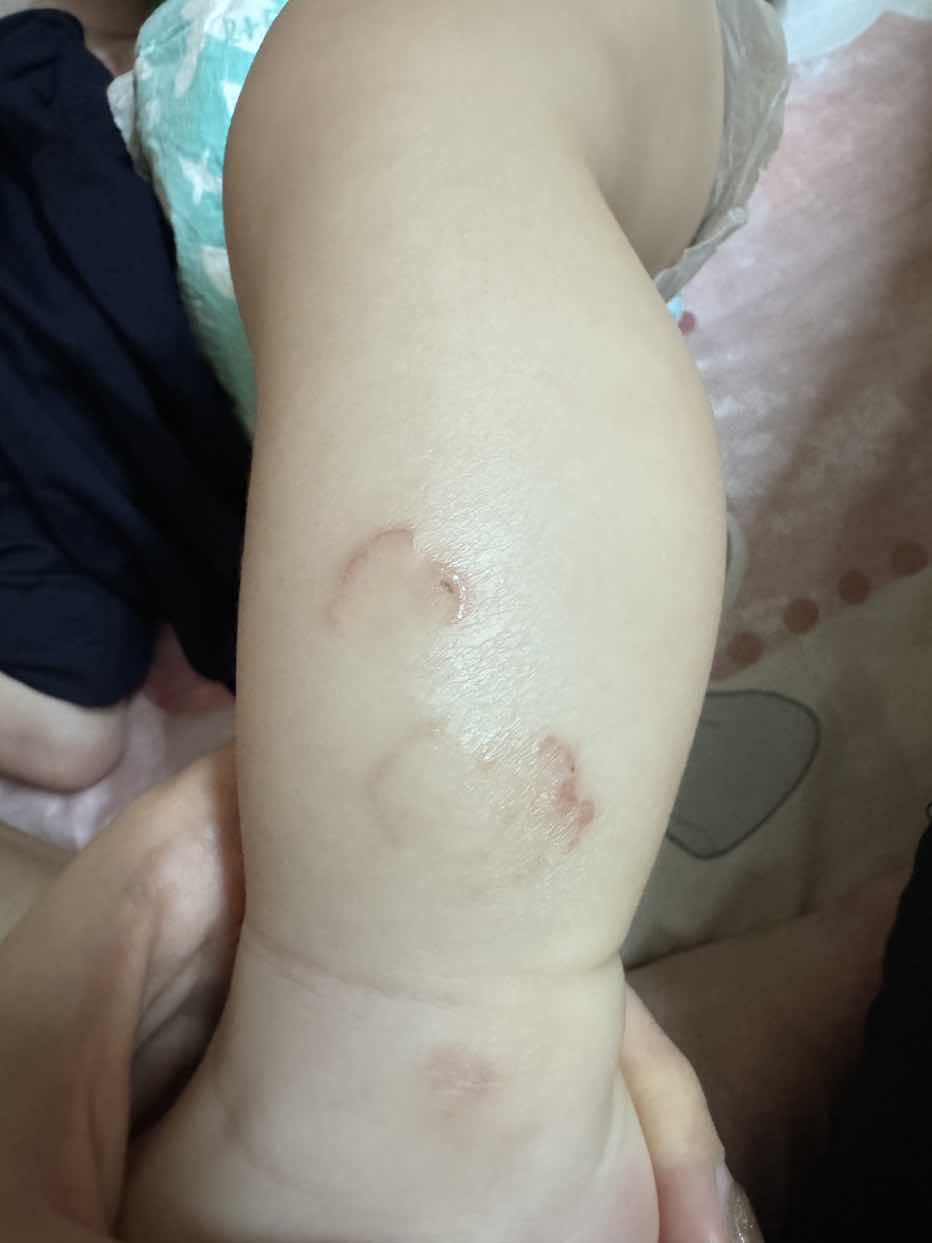 Con e dc 6 tháng , chân bên trái bị 2 vết tròn như này là bị j ah ? Bé ko đau , ko ngứa