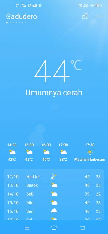 SubhanAllah, ini sperti di negara2 Arab klau lg musim panas, bahkan skrg suhunya sudah mulai turun. Trnyata d Indonesia ada yg smpe 40 keatas ya.
