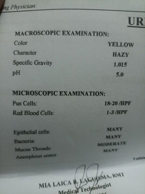 Magbasa pakung mali lang ang pagcatch mo ng wiwi, epithelial cells lang po dapat ang mataas. kaso sa nakikita ko po sa result nyo, yung character ng ihi- hazy or malabo, yung pus cells (nana)- mataas 18-20, may rbc din o dugo, plus yung bacteria many, mucous threads moderate, amorphous urates, many rin. lahat sis di normal, pati nga pH mababa. may infection ka po talaga... need mo ng antibiotic na sa ganyan. at more more water therapy. kung sakaling kukuha ka ulit ng sample ang saluhin mo yung gitnang ihi po, wag yung unang labas ng ihi.