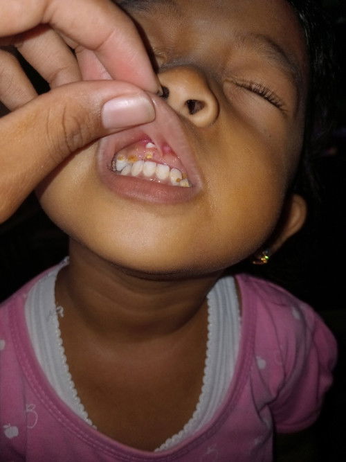 Anak saya akar giginya keluar dari gusi seperti difoto,kenapa ya?