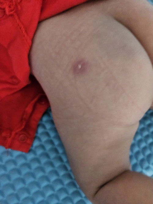 my girl had thus bump on backside many days, today suddenly saw got pus and is flowing out when we wipe her poo today. two days ago, we just did her 6 in 1 vaccination and rotavirus. Is this a side effect? Should I go see pd? or just clean with boiled water and air?