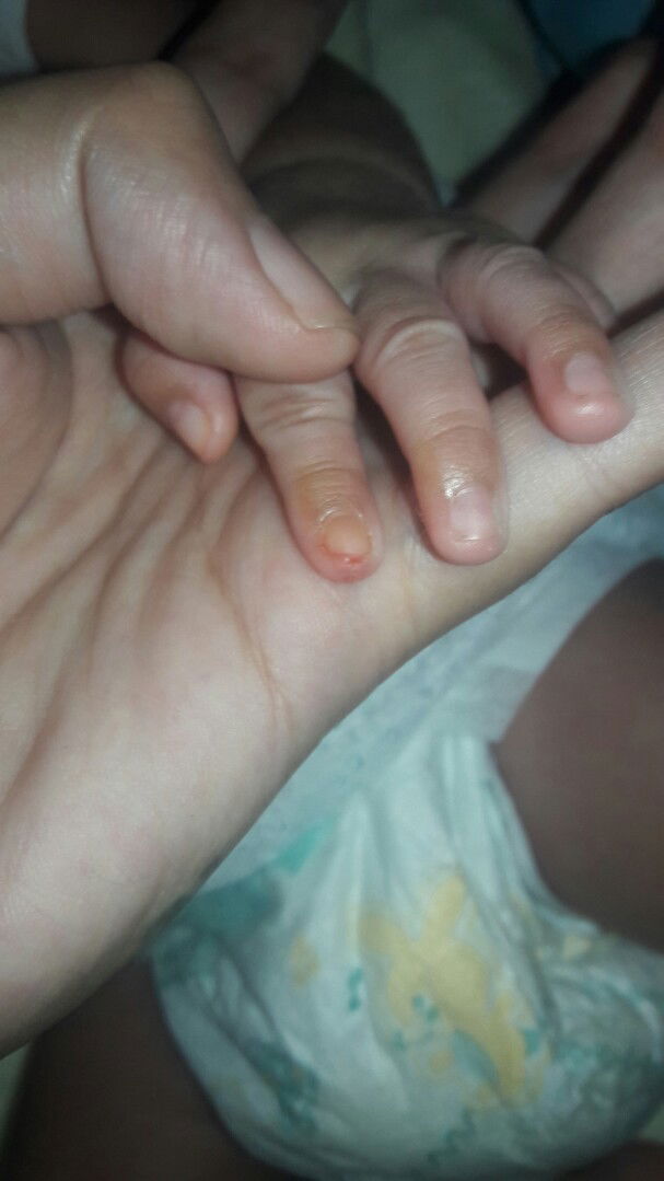 Gnyan dn ngyari sakin nung 1month si baby . bglang iyak nya at d nahinto pagdugo. Gawin mo sis pagka tulog sya at hilain mo pababa ung balat para d dumikit sa kuko or sumama pagnag nail cutter ka. Normal lng daw yan kung FTM ka po π€