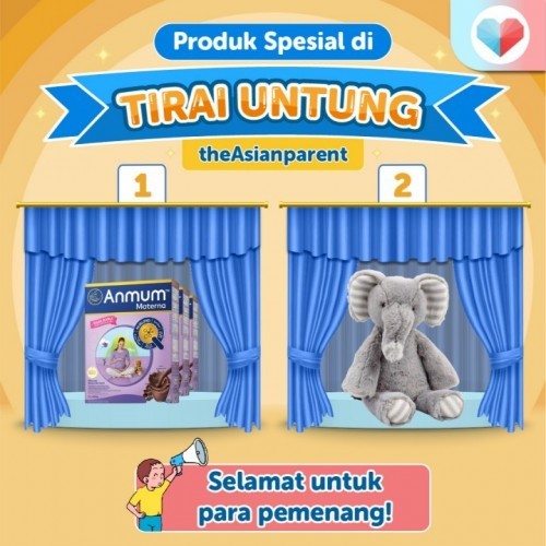 Halo Parents! Minsay mau umumin pemenang Tirai Untung nih ๐ Setelah mengundi semua peserta yang ikut, Minsay sudah punya dua orang pemenang Tirai Untung: Pemenang Tirai 1 adalah Sri Sumiyati (https://community.theasianparent.com/user/sri-sumiyati?lng=id) yang berhasil mendapatkan Anmum Materna Chocolate senilai Rp200,000. Pemenang Tirai 2 adalah Indah (https://community.theasianparent.com/user/indah-setya?lng=id) yang berhasil mendapatkan ELC Plush Toy Elephant Senilai Rp200,000. Nanti Minsay akan menghubungi pemenang untuk menanyakan data dirinya yaaaa๐ฅฐ Buat yang belum beruntung jangan berkecil hati ya, Minsay akan terus mengadakan kontes Tirai Untung setiap hari Jumat, Parents!
