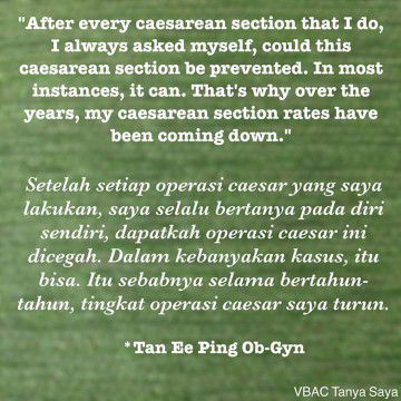https://www.facebook.com/563578313840114/posts/961292667402008/?app=fbl Mama Admeena suka banget deh sama dokter SpOG dari Malaysia ini. Kalau kamu gimana? Yuk kita lakukan post mortem juga. Apaan tuh? Baca deh postingannya yang satu ini. π Original Post: https://www.facebook.com/story.php?story_fbid=575747709245558&id=100004310028349 Terjemahan bebas: "Yuk kita ngobrol soal kehamilan pertama saya. Waktu itu saya dokter junior dan cek up rutin sama profesor saya sendiri di UH. Saya tau bayi saya besar tapi saya kebablasan selama hamil. Saya pernah meminta profesor saya untuk induksi lebih awal. Prof saya bilang karena saya seorang dokter harusnya tanggalnya akurat. Ga perlu induksi sampe 10 hari lewat hari. Kecewa deh soalnya udah berat banget rasanya. Ga sanggup ngelanjutin. Akhirnya suami saya melakukan membran sweeping setiap hari. Suami saya juga seorang dokter. Di usia 41w rembes, horeee udah waktunya. Ayo ke RS. Cek di rs, cuma bukaan 2. Rembes terbukti. Jadi tidak perlu induksi. Mereka memutuskan juga ngasih pitosin (untuk induksi). Takut sakit jadi saya minta epidural. Setelah epidural pitosin mulai jam 7 malam. Tidak ada sakit lalu saya tidur. 3 pagi cuma bukaan 5. Stres karena ga ada kemajuan, diem2 nambahin pitosin. Ketahuan dokter, kena marah. Duh! Dokter memang pasien terburuk. 5 pagi masih bukaan 5. Dokter mau sc. Saya bilang dokter istirahat aja dulu kelihatannya kecapean, tunggu aja shift berikutnya. Sebenernya sih ngulur2 waktu. 9 pagi ganti shift, masih bukaan 5 akhirnya saya setuju untuk sc. Bayi lahir 3.8 kg dengan ada tonjolan di sudut kanan yg artinya kepala bayi ga di tengah tapi miring. Maka itu sulit keluar. Nah begitu lah ceritanya. Kalau dipikirin lagi, bisa ga sc saya sendiri dicegah? BISA, gimana? 1. Jaga nutrisi selama hamil. Berat total saya kenaikannya sampai 20kg. Ibu jelas2 overweight. Jadi bayi juga overweight. Kalau bayi lebih kecil tentu akan lebih mudah keluar. Jadi tau ya kenapa saya selalu menekankan untuk diet. Kalau bayi lebih kecil jadi lebih mudah masuk panggul dan bisa ga lewat hari. 2. Induksi lebih awal. Induksi sebelum bayinya terlalu besar. Kalau bayi tidak terlalu besar posisi kepala bayi mungkin lebih baik. Kalau bayi kecil, posisi kepala miring pun tetap bisa keluar. Induksi (juga) sebelum rembes. Persalinan itu jangan diburu2. Induksi aja pelan2. Jarang gagal (lho). Induksi kan perlu waktu. Kadang berhari2. Selama belum rembes bisa ditunggu lebih lama dan ga masalah. Induksi terlama yang pernah saya tangani 5 hari. 3. Hindari epidural. Bergerak jelas dapat membantu kepala bayi untuk reposisi. Tapi kalau epidural (kita) ga bisa ngapa2in, jadi bayi ga bisa mereposisi kepalanya. 4. Induksi dengan cara yg berbeda. Kalau bukaan baru 2 dan serviks masih belum matang, pitosin mungkin ga bekerja sebaik yg diharapkan. Metode induksi itu sangat penting untuk memastikan akan ada kemajuan. Untuk menghindari sc metode induksi dan kesabaran pasien adalah kuncinya. 5. Jangan buru2 induksi. Mungkin kalau nunggu sebentar kepalanya akan reposisi dan serviks melunak jadi mudah membuka. Sc setelah 16 jam rembes masih terlalu cepat. Masih bisa ditunggu. 6. Yg terakhir, seks rutin selama hamil. Serviks akan melunak dan matang lebih cepat. Sehingga tidak perlu induksi sama sekali, atau kalau perlu induksi biasanya jarang gagal. Itu yg selalu saya lakukan pada setiap kasus saya. Saya melakukan analisa tersendiri (post mortem) setelah sc. Setelah sc saya tanya kepada diri saya sendiri apakah sc ini bs dicegah? Kebanyakan bisa. Karena itu lah rating sc saya menurun. Tahun 2014 saya cuma ada 4x sc yg ga direncanakan dari 386 kasus. 2015 sensusnya blm ready. Ntar deh diupdate. *** Gimana, gimana... keren kan dokternya. Masya Allah. Yuk analisa sebab sc pertama kita, siapa tahu bisa dicegah juga. Dengan mengetahui sc yang dulu bisa dicegah maka akan tumbuh rasa percaya diri bahwa sebenarnya kita bisa saja melahirkan per vaginam. Dengan begitu kita bisa mengatur rencana untuk VBAC yang aman pada persalinan berikutnya. Semangat, semangat!