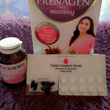 saya juga minum itu bun.. vitaminnya blackmores pregnancy & breastfeeding gold, terus susunya prenagen mommy. kalau pas mual minumnya yang prenagen emesis