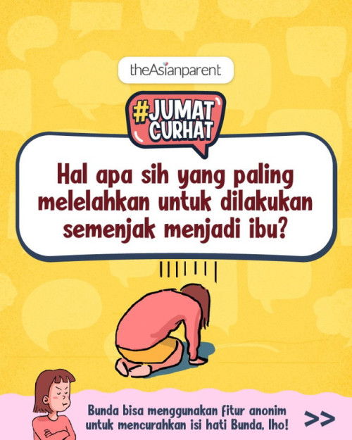 Halo Bunda! Bunda pasti punya uneg-uneg yang nggak Bunda keluarkan meskipun ingin. π€ Bahkan kadang, Bunda memendam perasaan terlalu dalam sampai Bunda lupa buat mengekspresikannya nih π₯² Salah satunya tentang bagaimana Bunda memiliki hal yang paling melelahkan untuk dilakukan semenjak menjadi seorang ibuπ§βπ€βπ© Jangan khawatir Bun, Bunda bisa mencurahkan uneg-uneg tersebut dengan aman lho di theAsianparent! Bunda juga bisa mendapatkan dukungan dan saran dari Bunda lain, dan bahkan bisa memposting secara anonim lhooo~ Caranya bisa dilihat di slide kedua post ini yaaa π€ Yuk, curahkan isi hati Bunda sekarang lewat fitur posting agar Bunda lain bisa tahu isi hati Bunda!π #JumatCurhat