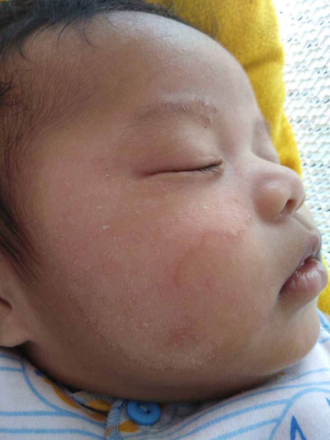 Itu bekas air susu bun hbs nete gk lngsung di bersihkan makanya jdi gitu harus nya hbs anak selesai nete pipi dan bgian leher anak di lap pakai air bersih jgn pakai tisu basah ya bun tp air bersih.