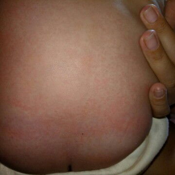 Itu kulitnya kering terus melar, biasanya ada rasa gatal