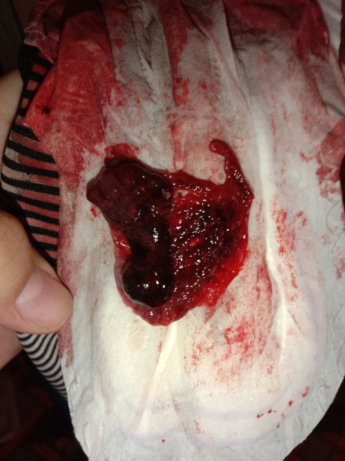 Maaf semua gambar agak kotor. Semalam first day period. Then pagi tadi keluar mcm ni. Dia seakan janin yg X terbentuk lagi. Cuma ada kepala dan ekor. Yg sebelah tu pulak mcm selaput putih dan tengah dia pada pandangan saya mcm tembuni kot. Ke perasaan Sy je. Tp tiap bulan sy period je. #SeriusTanya #bantujawab #ingintahu