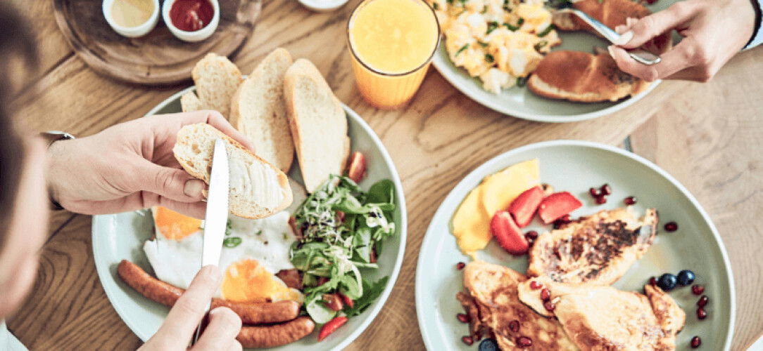 biasanya setiap pagi waktu masak sambil minum kopi/teh hangat/susu dan makan roti.