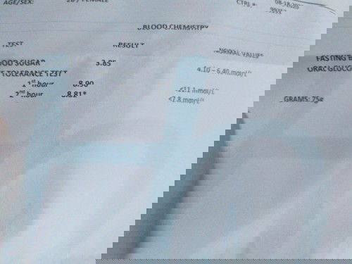 hi mga ka mommies, anyone here na same situation like sakin na mataas ang sugar, i had an OGTT this morning lang, and the result is higher than sa una test ko nun June, which is OGCT, medyo mataas kasi sya than sa normal values, kaya pina ulit ako, ngayon ang result ko is eto,attach ko po .ano po inadvise sa inyo ng obe nyo .thank you