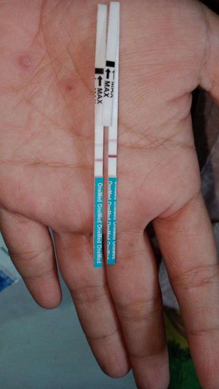 hasil tes kemarin 2 garis 1 samar , dicek 3 hari berturut-turut hasil sama , selang 5 hari kok keluar darah seperti haid , kira kira kenapa ya bunda ,