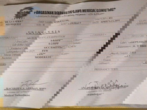 Hello Mommies! Just had my urinalysis today and with a result of TNTC/HPF, and prior to that is I had my Ammunorol na nireseta po sa akin ni OB kaya nag doubt po ako ganun ang result. Pati si OB nag taka din bakit ganun result, so niresetahan ako ulit ng dalawang klase antibiotic at yung sinisiksik sa pem.... Pero bago ko bilhin eh nag doubt na po ako, kaya nag second opinion po ako, nag repeat urinalysis po agad agad sa ibang lab... What can you suggest po? Nahihiya po kasi ako magtanong sa OB ko po baka po iba ang isipin, ang sa akin lang po eh sinunuod ko naman lang yung instinct ko at ayon po di sila magkatugma ng result super napakalayo po ng result... Enlighten me...