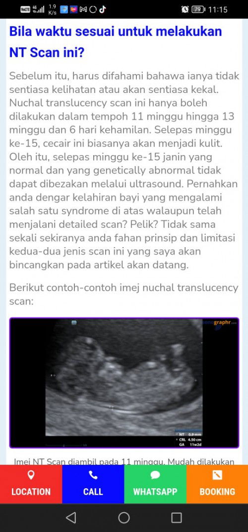 Baca lagiIkut klinik,.. Ada tempat yg masih boleh buat... Sy pun rasanya buat dlm 13 or 14w or lebih sikit.. Dah lupa.. Insha'Allah boleh Cuba cari kat fb ke klinik area tempat sis yg ada buat NT scan then nanti try tgk klinik berdekatan tu apa service dan week berapa.. Nanti boleh call dulu klinik tersebut .. Mcm sy, sy buat NT scan dkt klinik anda Kuala selangor.. Kat sana memang best, doktor dia pun ok, layanan pun bagus.. Dari first prgnt sy scn kat sana.. Cuma yg jantina je sy x scn kat sana sbb masa tu budget kurang so sy buat kat sonobee.