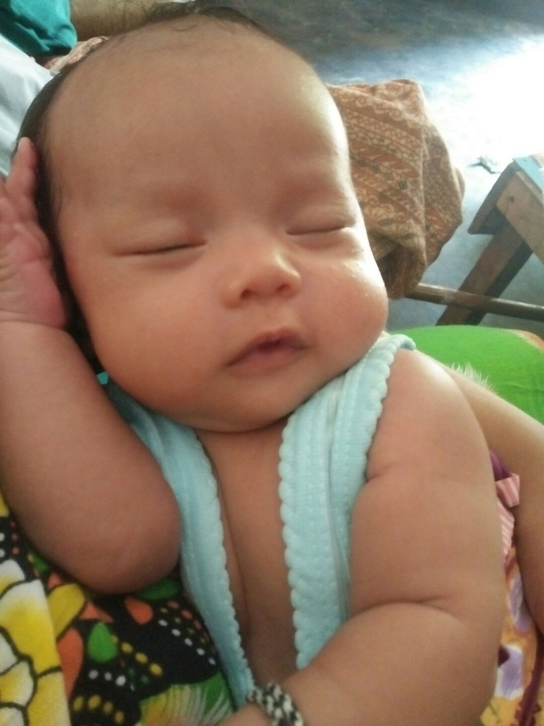 mirip banget posenya sama anak saya bun..kalau g dibedong tangannya ya gitu...gemess aku bun