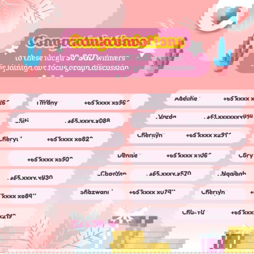 CONGRATULATIONS to the following winners!! You've won some goodies from taking part in our Focus Group Discussion! 🥳 Our insights team has reached to you with regards to your prize. If you have any query, to reach out to our insights team at [email protected].