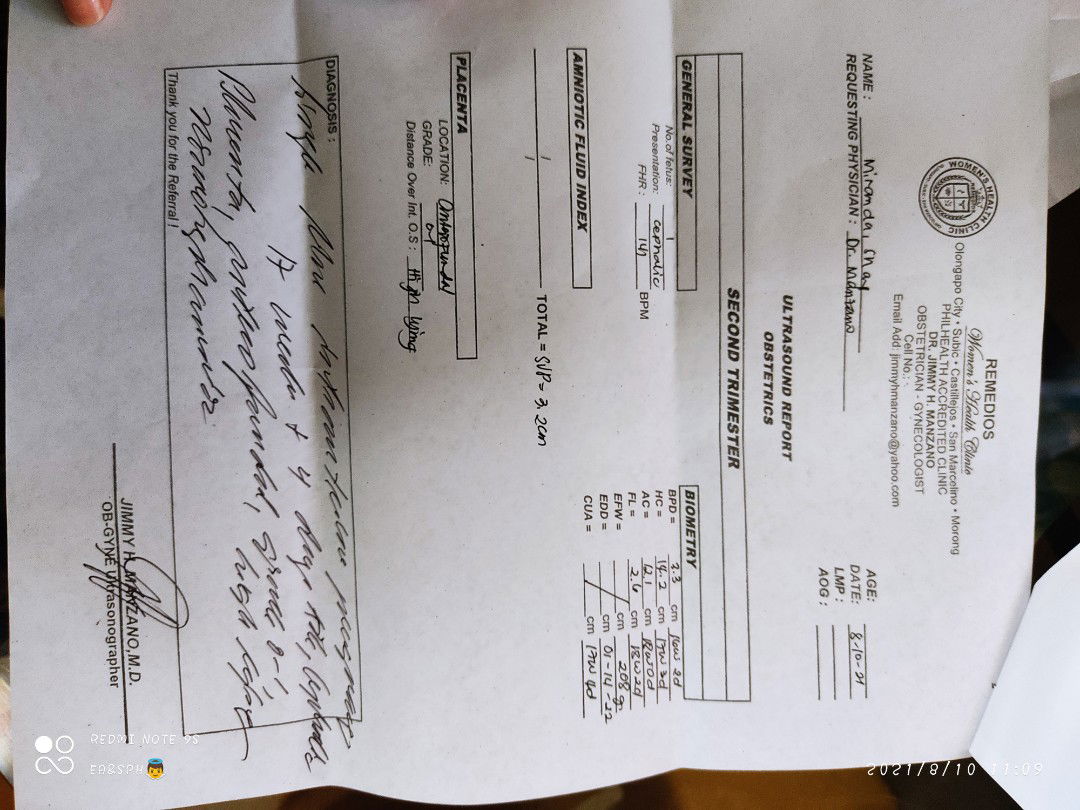 single live intrauterine pregnancy 17 weeks and 4 days AOG, cephalic , placenta, .. di ko na kinaya yung remaining sis hirap mabasa 😅