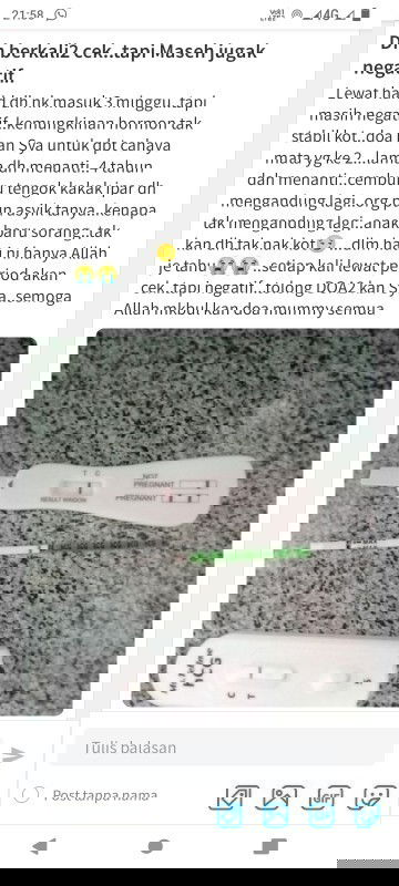 Baca lagikan sis..Sya dh lewat period 16 hari..dh cuba cek upt..tpi masih negatiff..tak teratur..1bulan datng 1 bulan tak