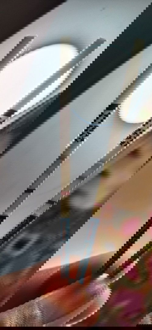 keliatannya 2 garis. tapi kok jaraknya berjauhan yah. semoga beneran positif ya bund