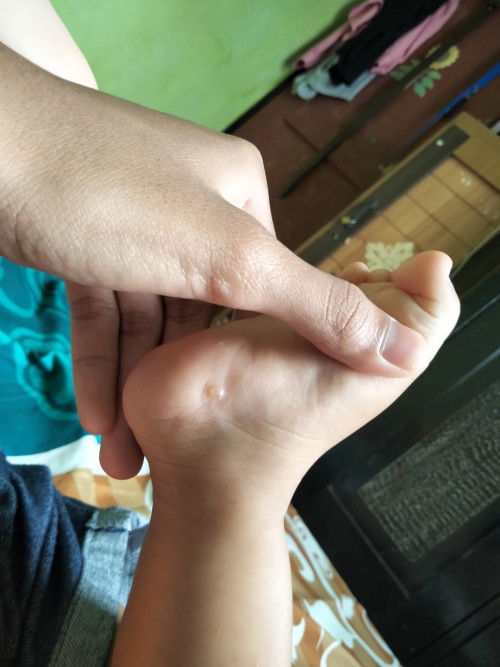 olesin minyak kayu putih yg gambar ayam teh..ampuh lgsg kempes. anak ku pernah gitu..tp itu abis digigit nyamuk. pas ke bidan disuruh stok minyak kayu putih yg gambar ayam..pas saya olesin bsk nya kempes