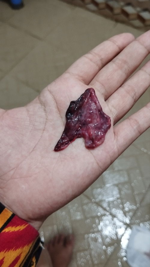 telat dua minggu pas pipis keluar seperti gumpalan dan darah,