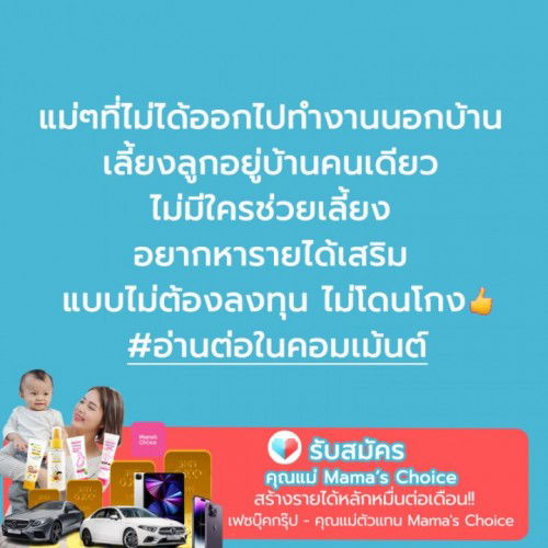 theAsianparent ขอเป็นส่วนหนึ่งในการช่วยคุณแม่สร้างรายได้เสริมในโปรเจกต์ "คุณแม่ Mama's Choice" งานพิเศษที่ไม่ต้องเสียเงินลงทุน ทำงานไปด้วย เลี้ยงลูกไปด้วยสบายๆ แถมไม่ต้องลงทุนสักบาทก็สร้างรายได้หลักหมื่นได้ แค่ร่วมทีมขายสินค้าแม่และเด็กกับเรา ✅ ไม่ต้องลงทุนสต็อคสินค้า ✅ ไม่ต้องส่งของเอง ✅ มีทีมการตลาดซัพพอร์ต ✅ กำไรดี ได้ทั้งค่าคอมและโบนัส ✅ ไม่ทีประสบการณ์ก็ทำได้ คุณแม่ที่สนใจ ไปที่กรุ๊ปเฟซบุ๊ก “กลุ่มคุณแม่ตัวแทน Mama's Choice” หรือคลิก https://www.facebook.com/groups/635936001641982
