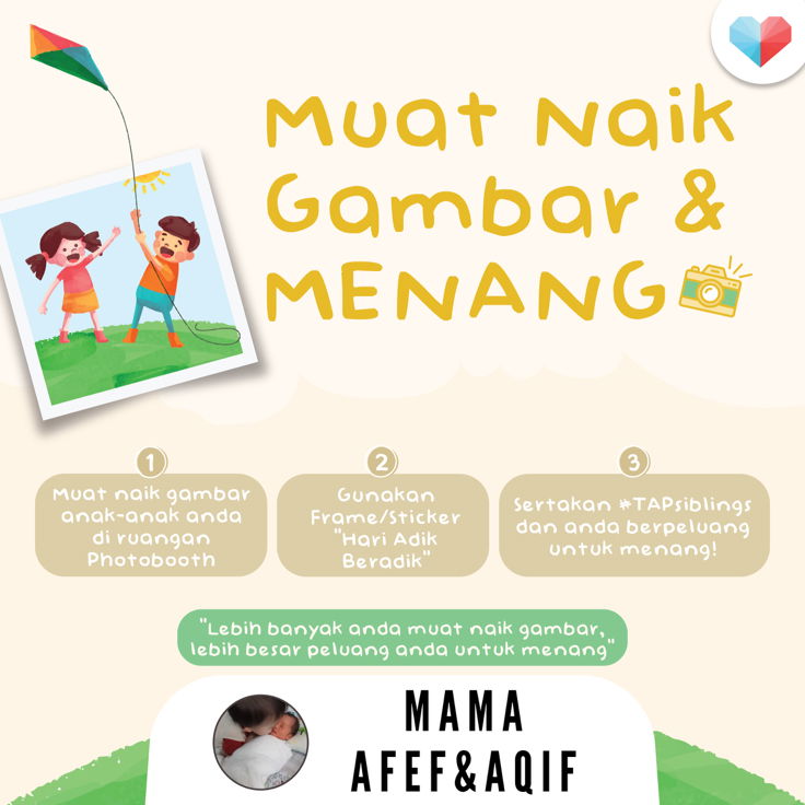 Tahniah kepada pemenang bagi Contest Muat Naik Gambar & Menang, Mama Afef&Aqif ? Anda telah terpilih dan memenangi hadiah istimewa dari theAsianparent! Segala maklumat akan kami hantar melalui emel anda, pastikan anda check di sana ya ?? Salam Kasih, Team theAsianparent MY