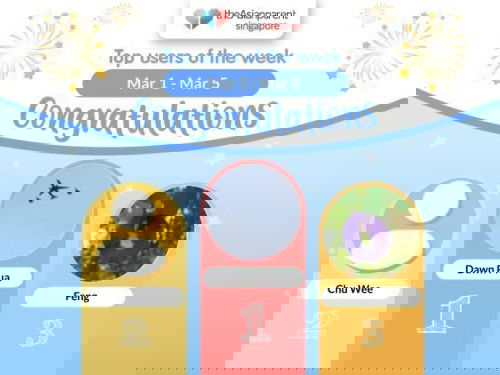 Congratulations to our top three users from last week! Do check your email, as we have a little something just for you 📥 🥳 To Khoo (4th place), Karthik (5th Place) and Tan Ghim Seng (6th Place), you are really close to be featured on our top three users for the week. You can do it! 💪🏻 Want to be feature on our leaderboard? Start answering questions and polls this week, and you might just be one of the lucky three users to be featured here! Head over to our Community Q&A or poll section to start earning those points 🤩