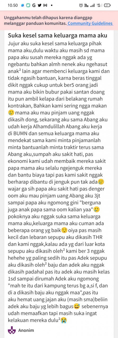 ya ampuun,, jdi inget dulu kala,, wktu susah, sama mamah jln kaki jauh dari subuh jam 5 pagi nyanpe jam 9 pagi buat ke rumah sodara mamah buat minta uang 20-30 rb, karena sodara mamah guru jdi dateng jam segitu gak ada siapa2 di rumah nya, akhir nya kami nunggu di luar teras sambil ganjel perut pake wingko babat 🥲🥲, untung nya sodara mamah ini baik bgt kecuali sodara2 yg lain. sekarang keadaan kebalik, keluarga ku udh ber ada giliran sodara2 yg dulu g bantu apa2 bulak balik minta ini itu, sedangkan sodara ku yg dari dulu nge bantu sekalipun gak pernah minta sama sekali.