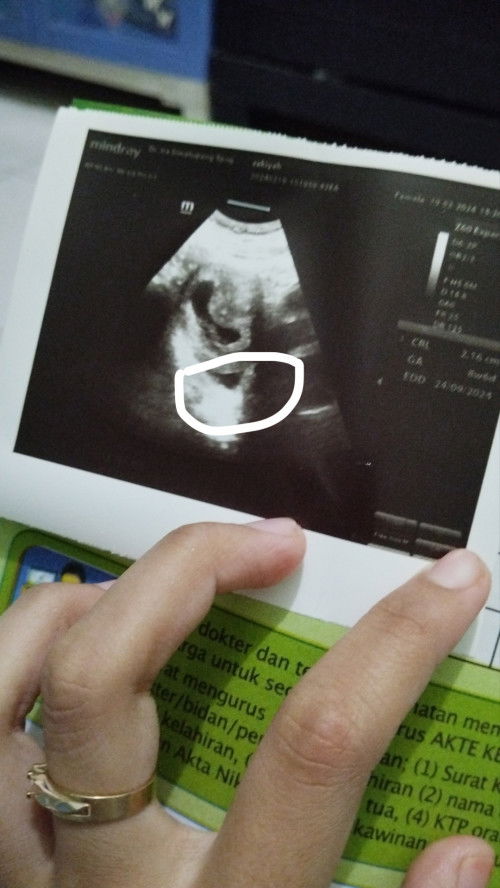 Mau nanya bun, foto yg aku lingkarin itu apa ya? Apa bnr kantung janin nya ada dua?