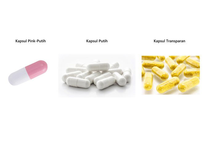 Kapsul warna putih,kalau tak sengaja terjatuh keliatan kapsulnya ada debu atau tidak