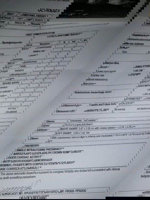 Magbasa paHi mamsh. I was trying to see kung gano kalaki yung subchorionic hemorrhage, I think okay lang yun. Hindi ganun ka laki. But there’s a chance na lumaki yun as far as I know. May pampakapit ka ba or nagbebedrest ka? Still bleeding? If your OB is not worried, probably there’s nothing to worry. Pero naiintindihan kita. Be extra careful. If you have to rest, rest. Take your meds. And try to relax.