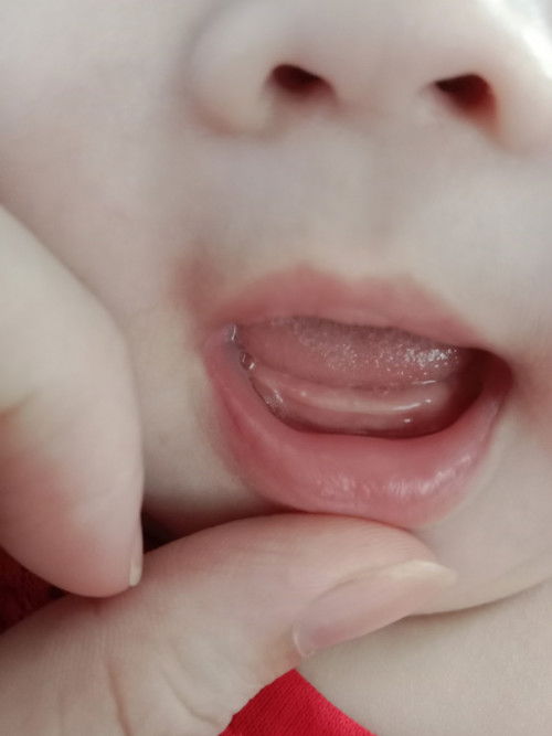 chưa m oi. mọc răng là chổ răng có nhìu tia máu màu đỏ. xong chổ mọc răng sẽ có vết rách để răng nhô lên nè