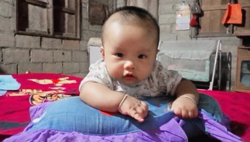 5เดือน 4วันครับผม ยิ้มเก่ง คว่ำหงายได้เเล้วครับ หัวเราะชอบใจ เสียงกรนตอนหลับ กลางวันนอนน้อยมาก ชอบมองสนใจรูปสัตว์ เสียงสัตว์